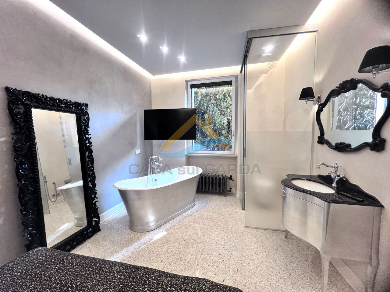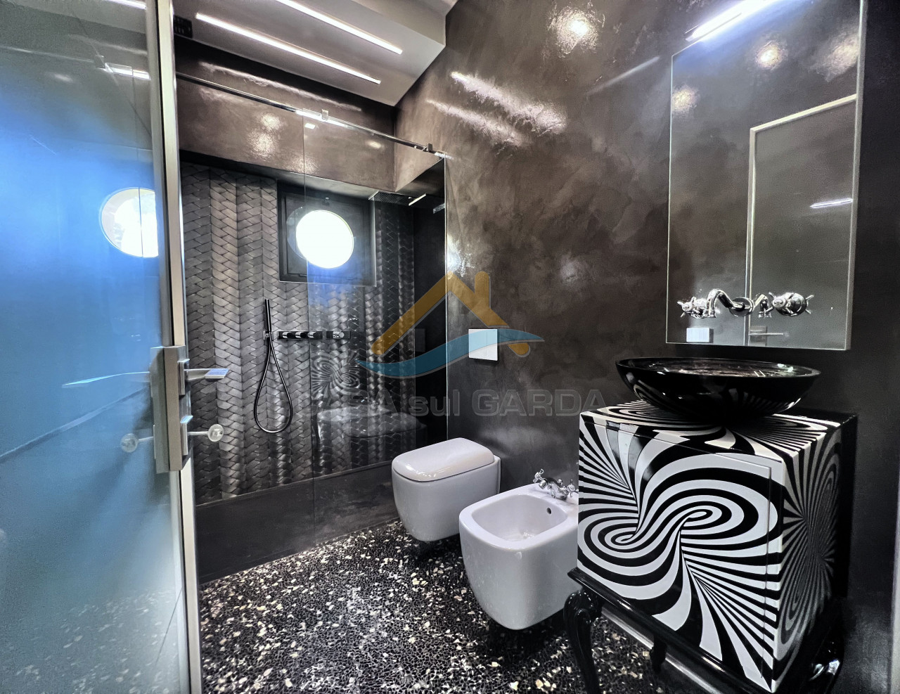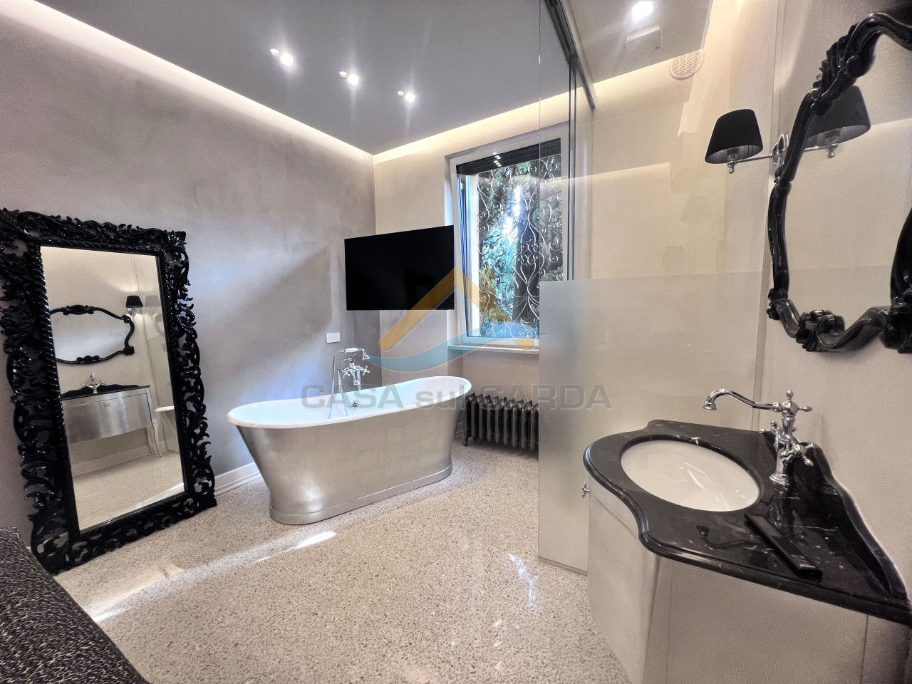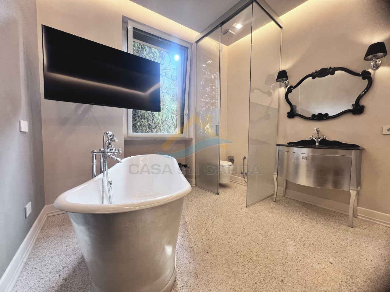 All’interno delle antiche mura del Castello di Sirmione, in un contesto residenziale di assoluto prestigio, proponiamo in vendita un immobile esclusivo immerso in un parco privato di circa 1 ettaro, con piscina condominiale unica nel suo genere, realizzata con la forma del Lago di Garda.